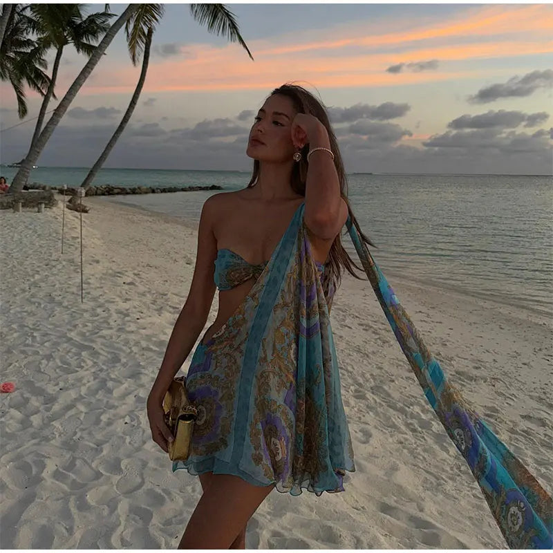 CORAL BLISS STRAPLESS MINI SUNDRESS - FLORAL